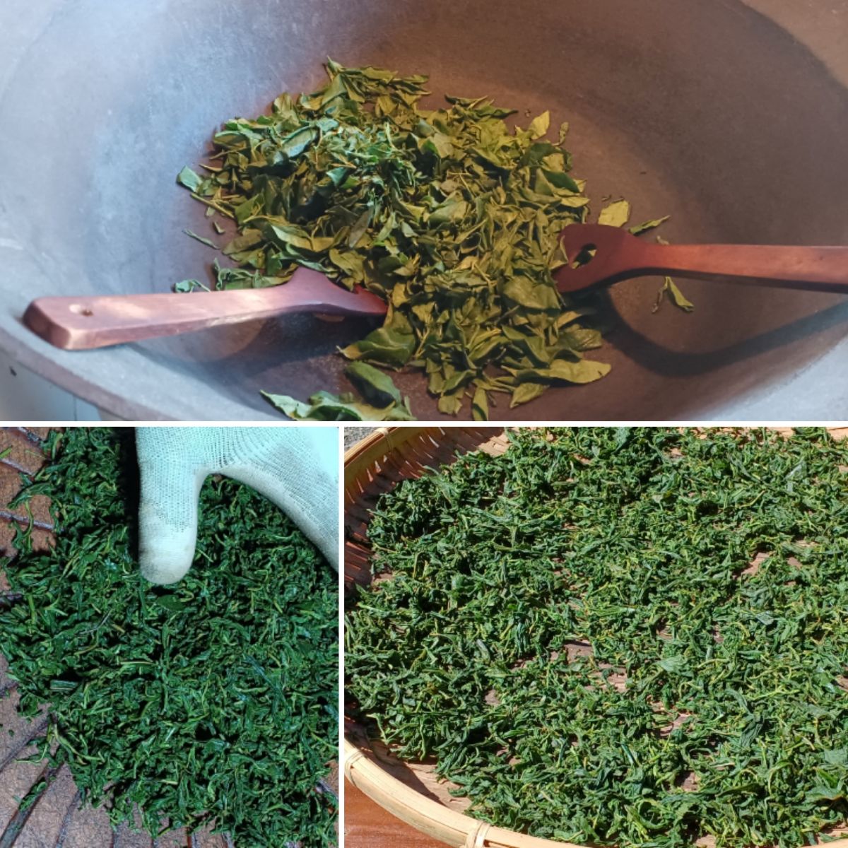 手摘みした茶葉を鉄窯で炒り、揉みこんで、天日干しする鎌倉時代から続く「鹿野茶」の製法です。