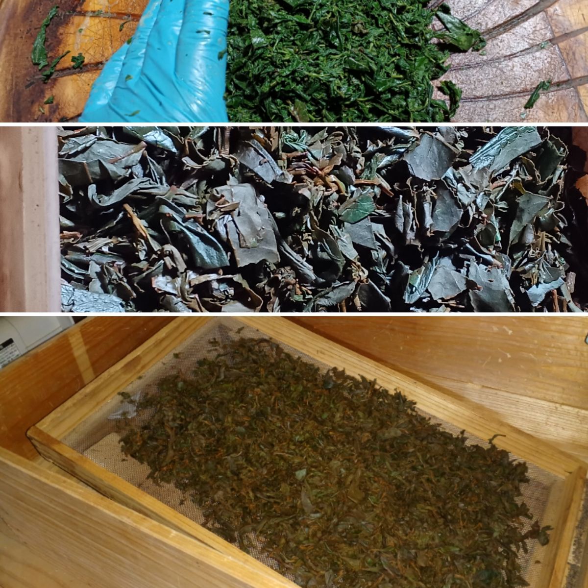 そんな茶葉で紅茶(鹿野和紅茶)も作っています。一晩風に当てた葉を生で揉み、約2時間発酵させ、自家製の乾燥機で乾燥させています。